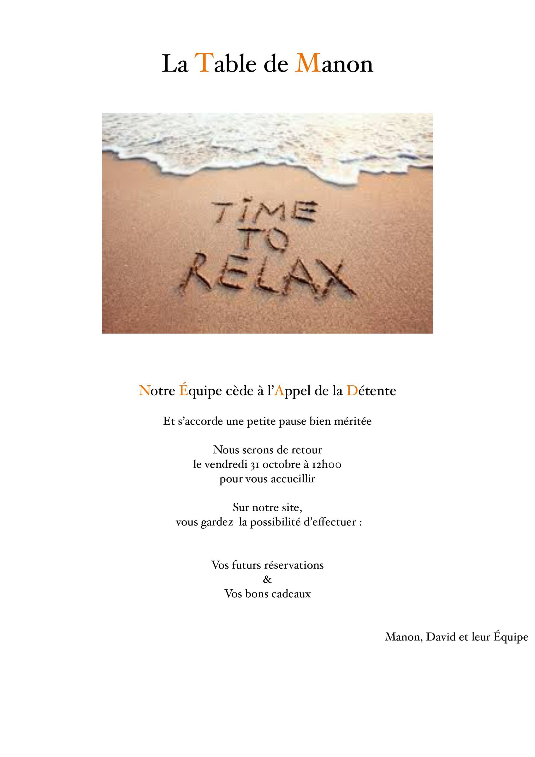 Menu served from Thursday to Saturday only at lunch except public holidays